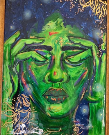 I am a Colorado raised Filipina/German American teacher and artist. In addition to my own lived human experience, my strong connection to my heritage influences my art. As well as, a history of being exposed to a great deal of vintage catholic prints, medieval and twentieth-century art. My art is a mix of abstract, emotionalism, portraiture and fantasy! I am a self taught artist who likes to use different mediums like foil and leaves. I have an MA. in Educational Psychology and when I am not teaching or painting, I am doing yoga, reading, hiking, yapping or playing with my pups. Painting has always been a way for me to heal, challenge myself, express my emotions and have fun!